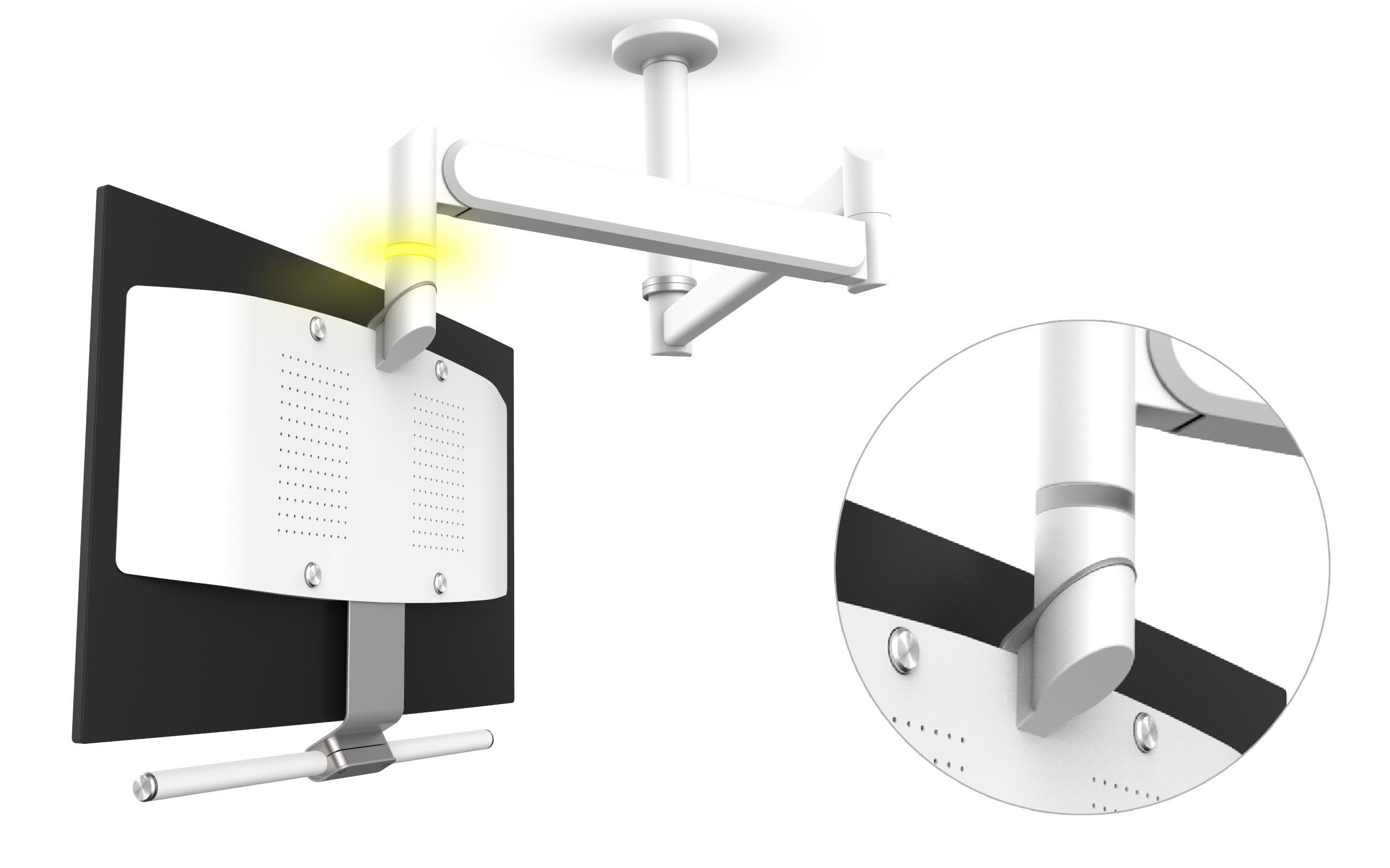 A 55 inch monitor on a flexible arm, allows the medical operator to perfectly place the screen and have the crucial information always visible and at hand.